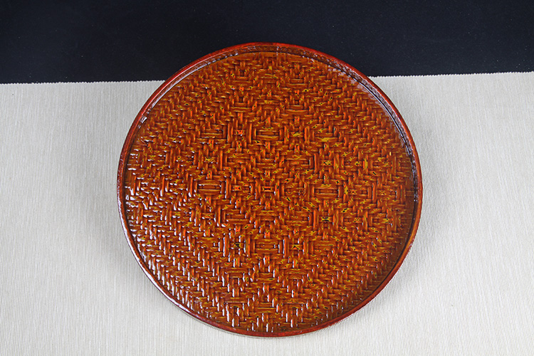 日本漆器 日本轮岛涂木胎漆器四方形漆器盘 日本轮岛涂漆器工艺,四方形,编制纹,工艺精细,带原装供箱