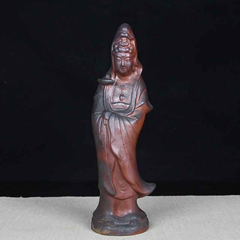 日本备前烧 日本备前烧观音佛造像 日本备前烧工艺,烧制观音立像,观音开脸端庄,脚踩莲花座,整体做工精细