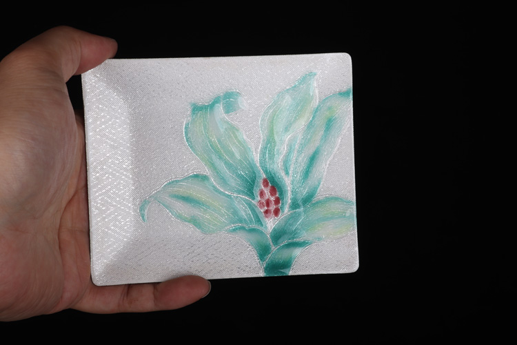 【名称】日本杯托 日本七宝烧兰花纹四方形杯托两客 日本七宝烧工艺,烧制兰花纹,颜色亮丽,工艺精细,带原装供箱。