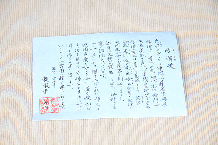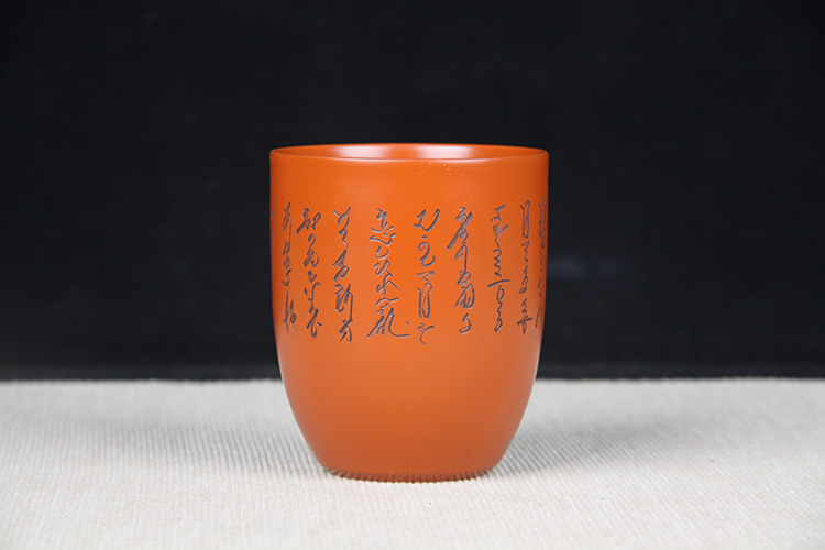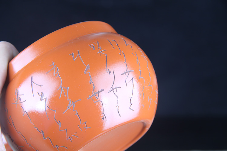 【名称】日本陶瓷茶道组日本常滑烧刻绘诗句侧把壶品茶杯六件套日本常滑烧工艺,刻绘诗文,高杯高壶,泡绿茶首选,赖凤堂作,带原装供箱。急须:口:8.5cm,底:6.3cm,高:6.7cm,全高:9cm,肚:10.3cm,把长:7.4cm,容量:400ml,杯:口:6.4cm,底:3.6cm,高:7.4cm,容量:165ml。