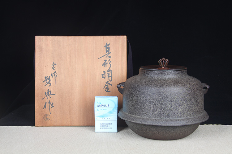 【名称】日本茶釜 日本高桥敬典正寿堂真形羽釜 日本人间国宝高桥敬典作,经典器形,几乎全新,状态极好,带敬字款,带原装供箱。