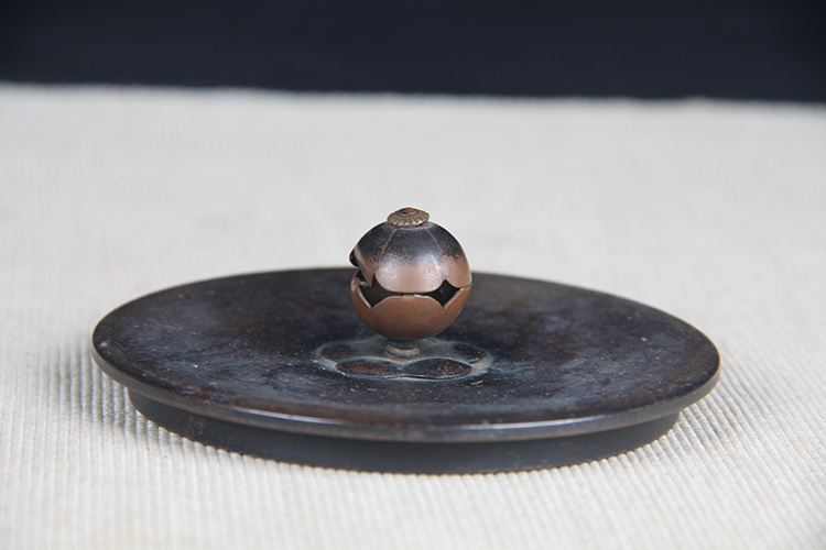 • 日本杯托 日本腾美造花瓣形铜杯托五客 铜制杯托,花瓣形,内铸造梵文,名家作,年份久,带原装供箱