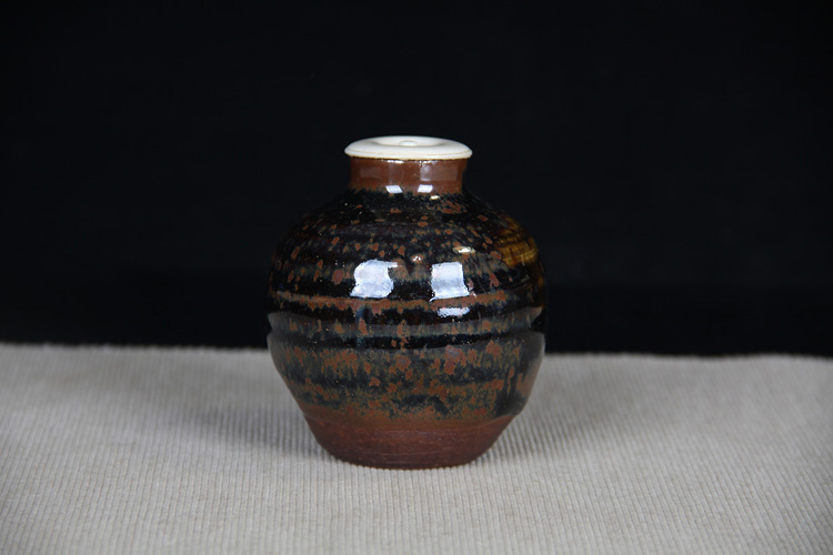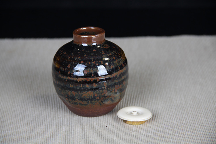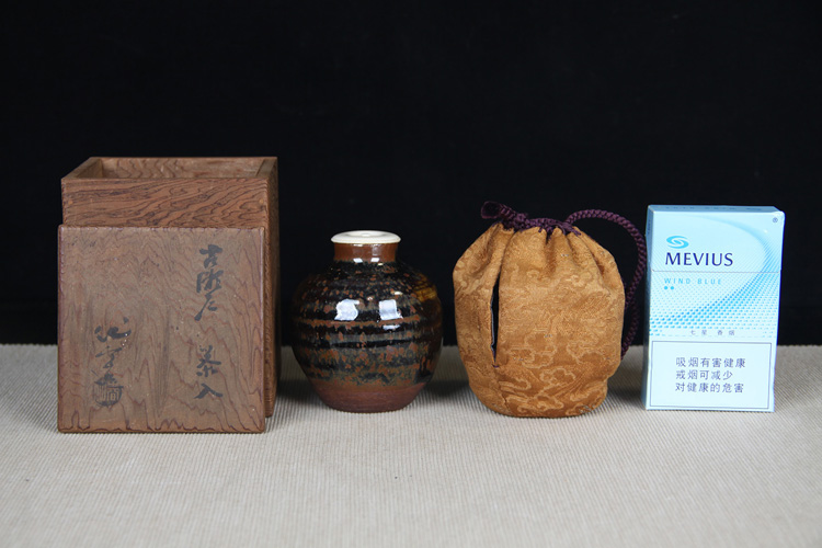 日本茶入 日本酱釉抹茶茶入 日本传统茶入,带茶衣,带原装供箱,高端茶入盖