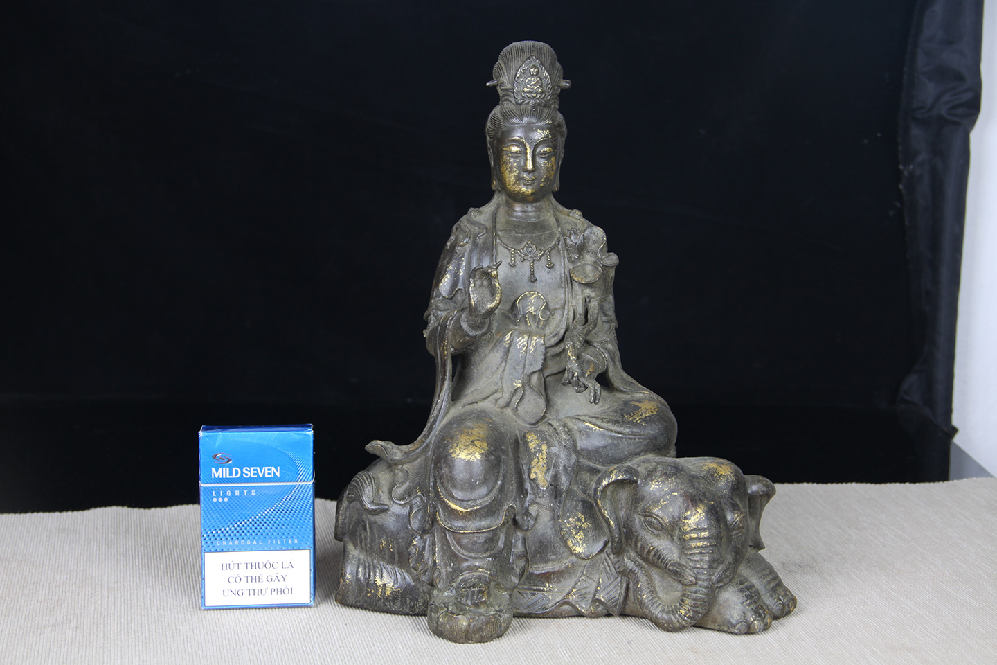 日本佛像 铜鎏金佛像,一手持宝瓶,一手持灵草,盘坐莲花盘,年份久,包浆皮壳漂亮。