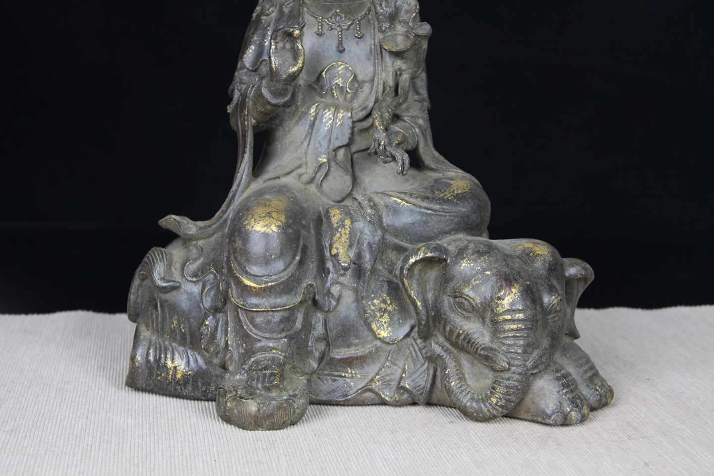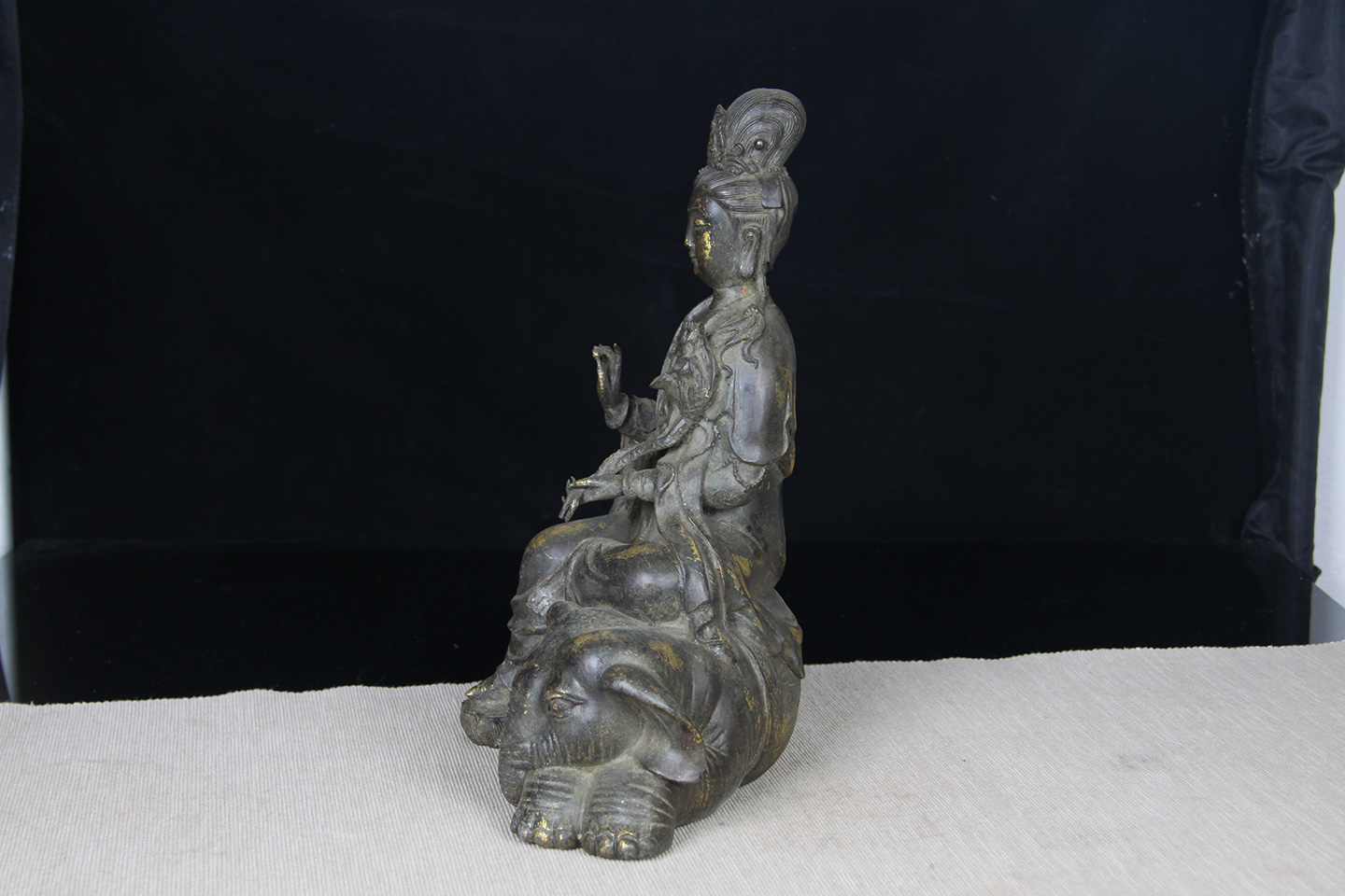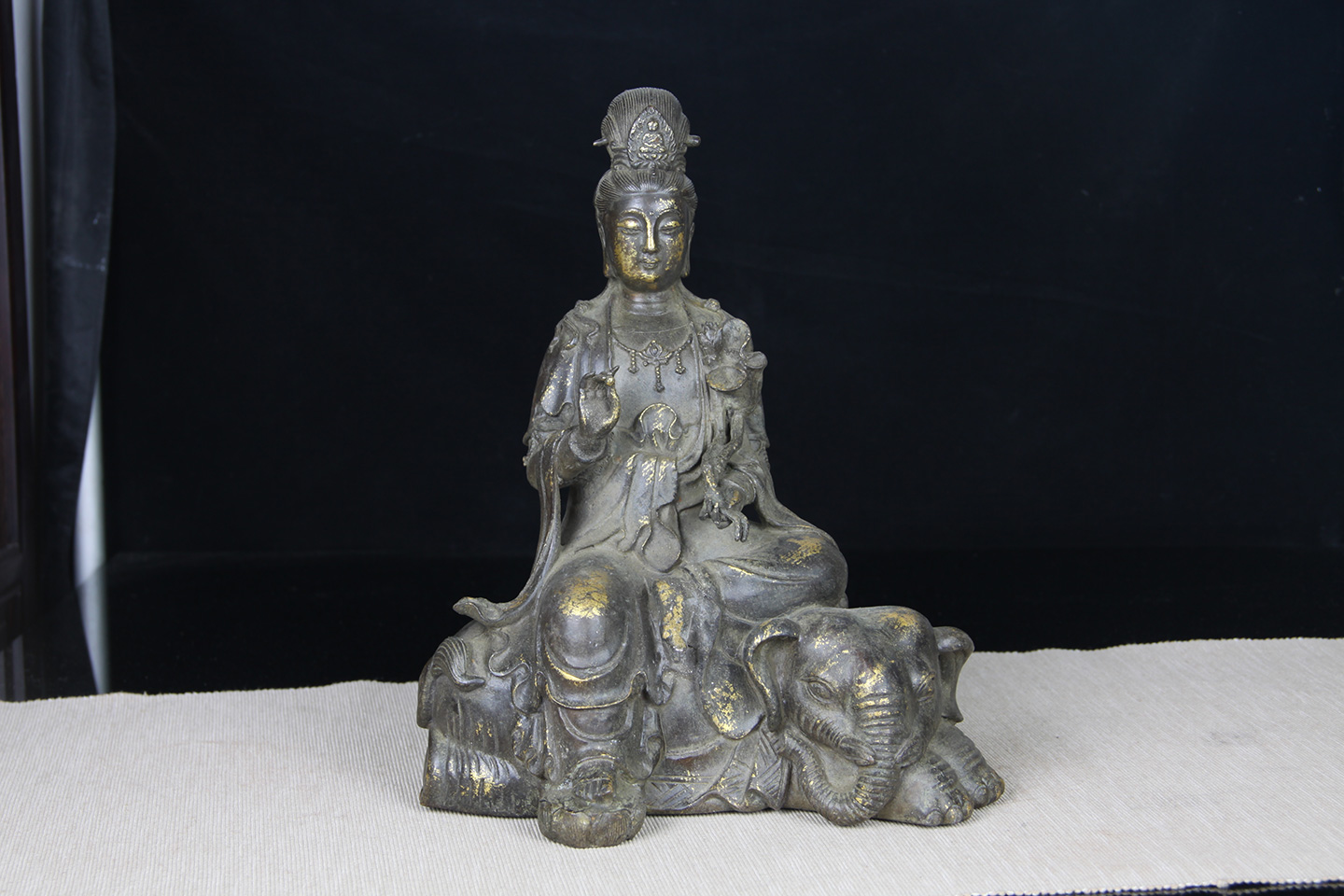 日本佛像 铸铁老菩萨 包浆皮老 左右各一个灵兽狮 观音面慈祥露笑 普度众生