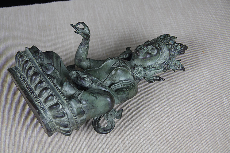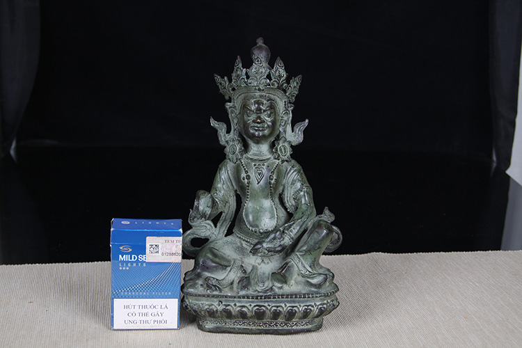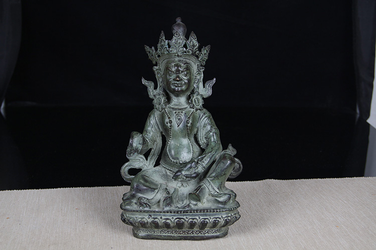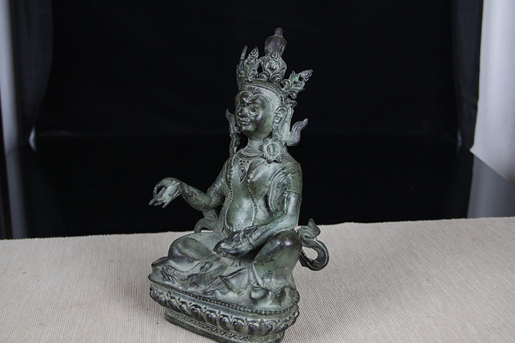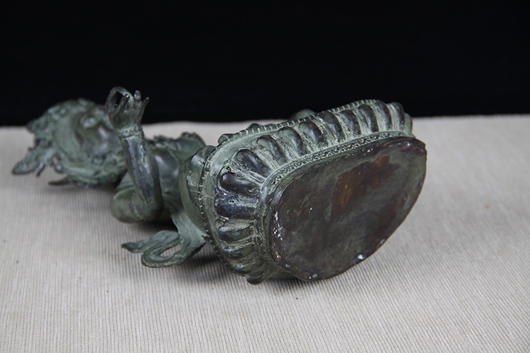 日本佛像 铜鎏金佛像,一手持宝瓶,一手持灵草,盘坐莲花盘,年份久,包浆皮壳漂亮。