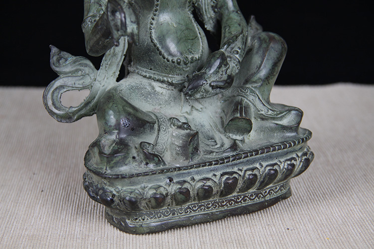 日本佛像 铸铁老菩萨 包浆皮老 左右各一个灵兽狮 观音面慈祥露笑 普度众生
