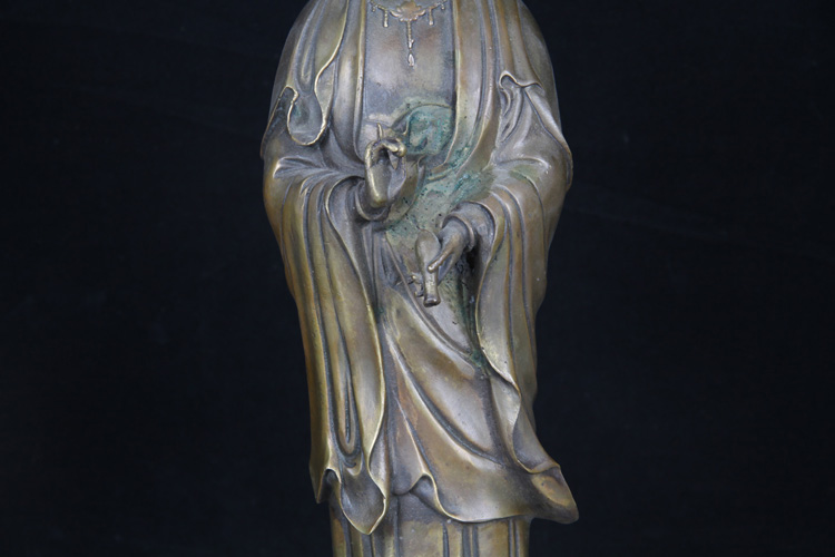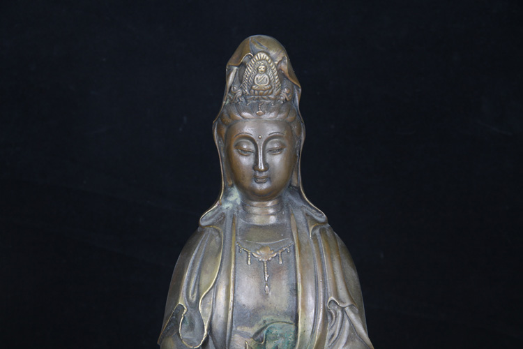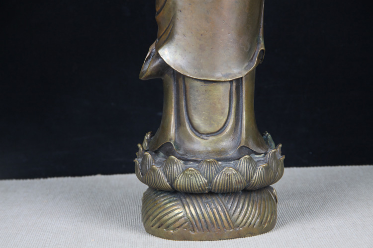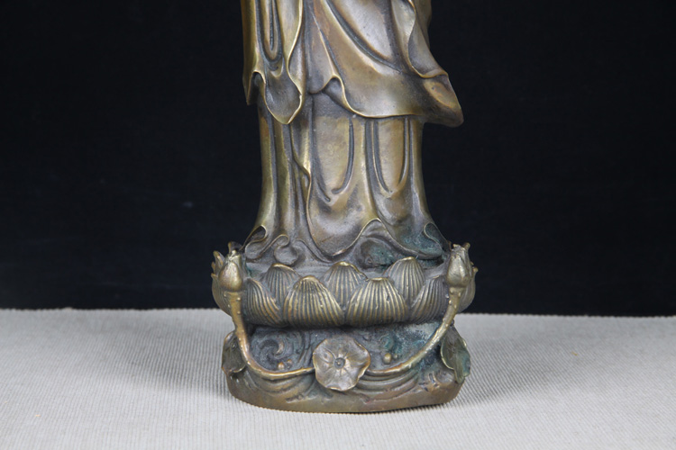 日本佛像 铜鎏金佛像,一手持宝瓶,一手持灵草,盘坐莲花盘,年份久,包浆皮壳漂亮。