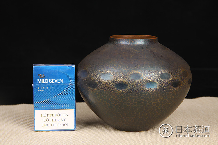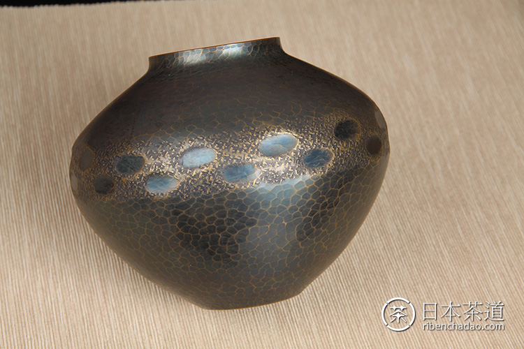 日本花器 日本蓝釉兔毫纹长颈鹤首瓶 日本政平窑,流纹烧鹤首花瓶花器花插,釉水极为肥润,铁胎工艺,带原装供箱