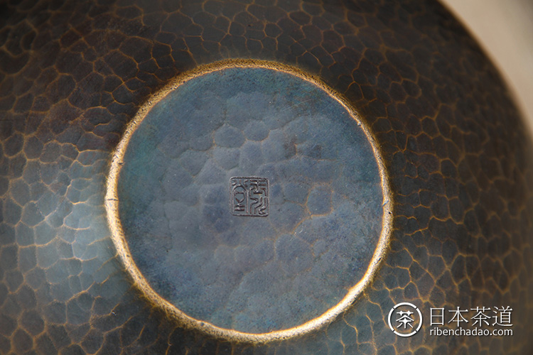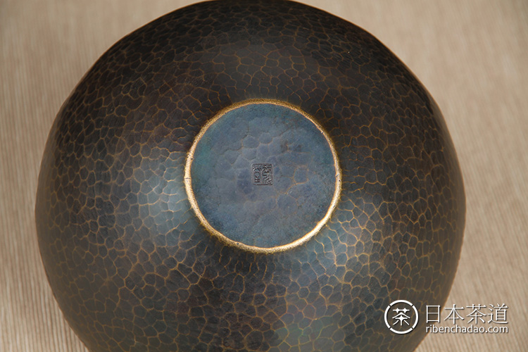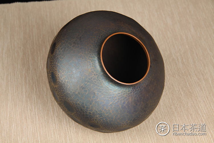 日本花器 日本铸铜橙斑双锤头型铜花瓶 日本铸铜工艺,橙斑着色,带作者款识,带原装供箱