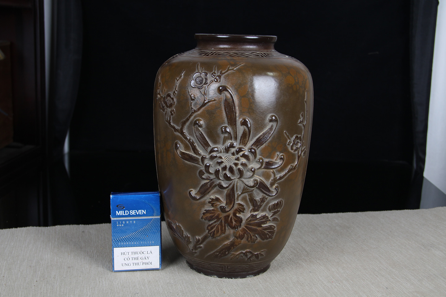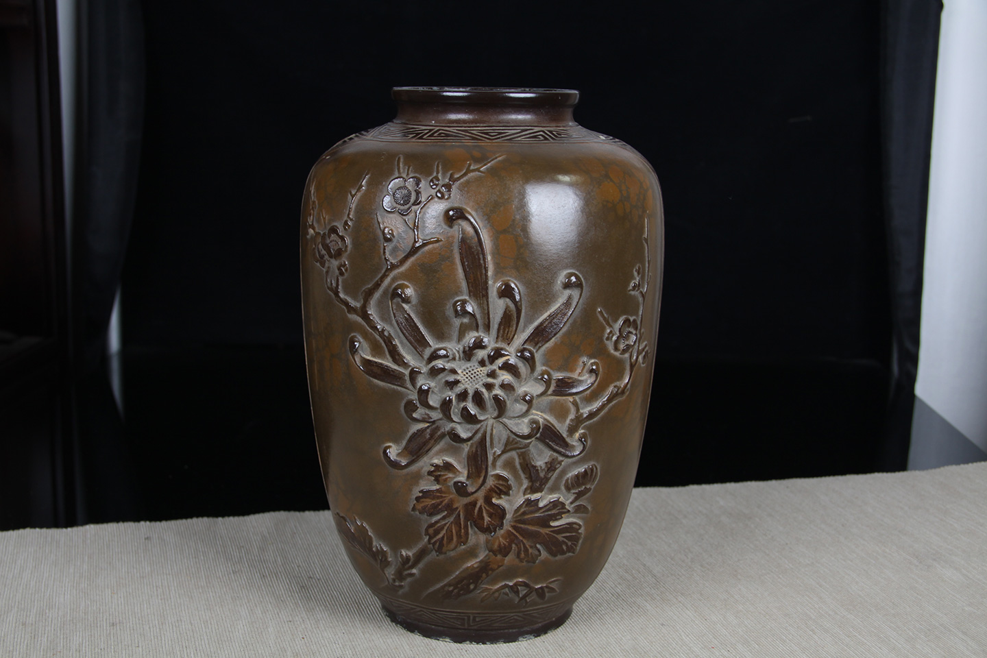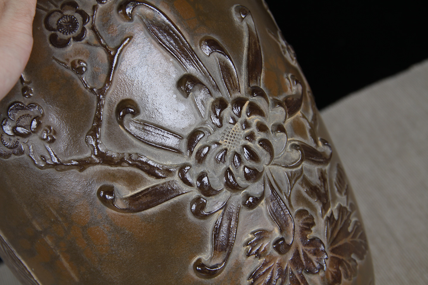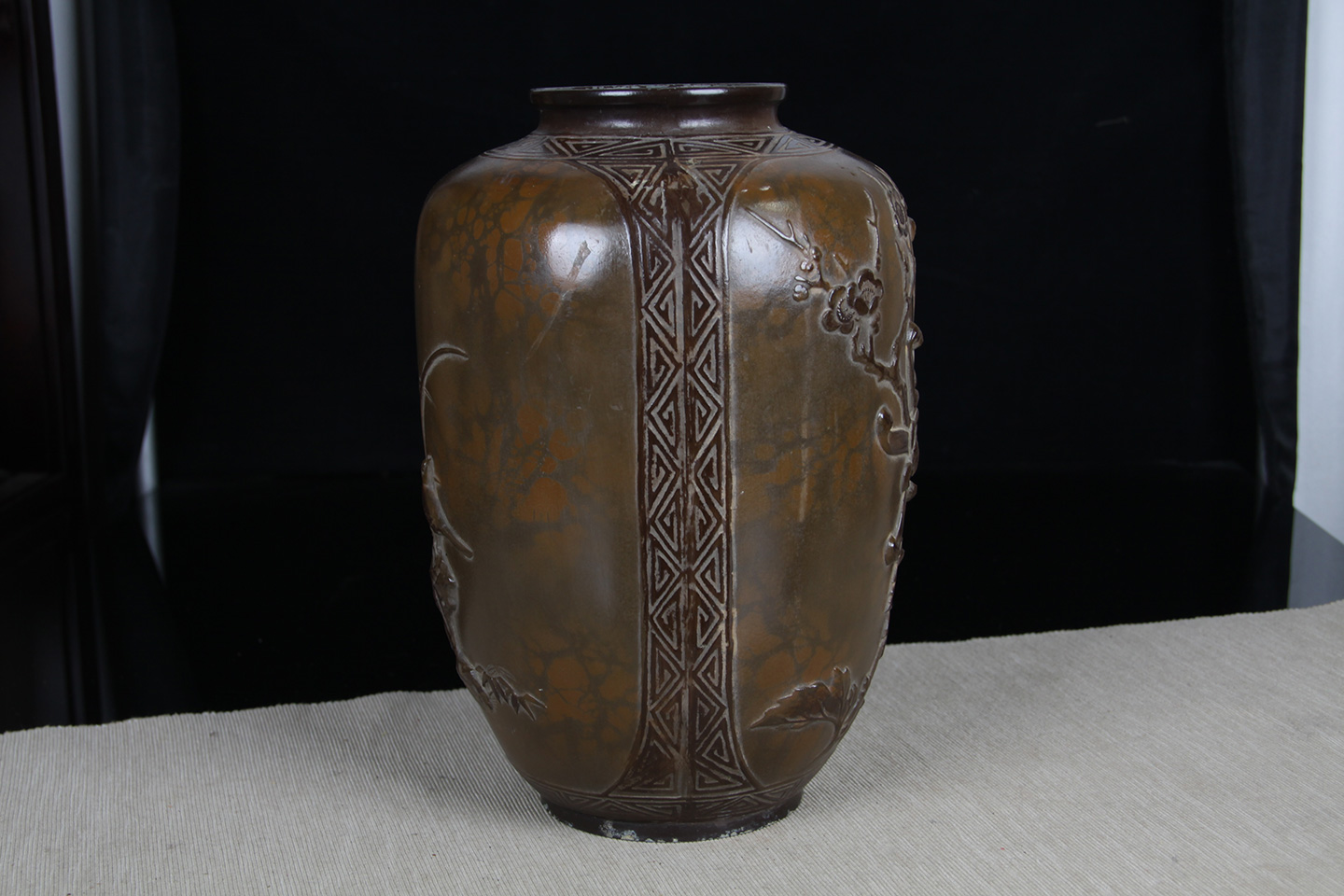 日本花器 日本木制刀刻纹花器花瓶 内有铜胆,尺寸较大