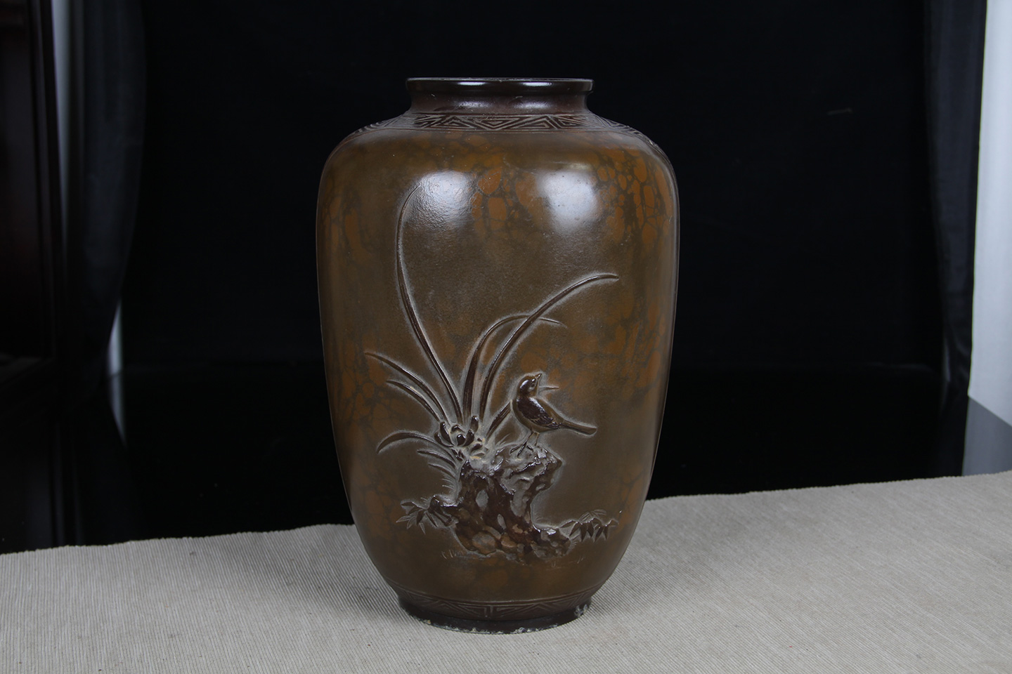 日本花器 日本蓝釉兔毫纹长颈鹤首瓶 日本政平窑,流纹烧鹤首花瓶花器花插,釉水极为肥润,铁胎工艺,带原装供箱