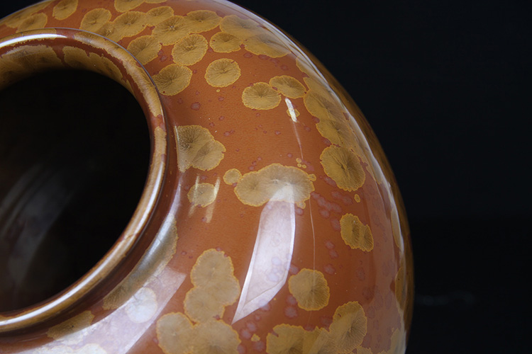 日本花器 日本铸铜橙斑双锤头型铜花瓶 日本铸铜工艺,橙斑着色,带作者款识,带原装供箱