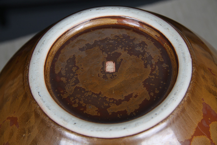 日本花器 日本蓝釉兔毫纹长颈鹤首瓶 日本政平窑,流纹烧鹤首花瓶花器花插,釉水极为肥润,铁胎工艺,带原装供箱