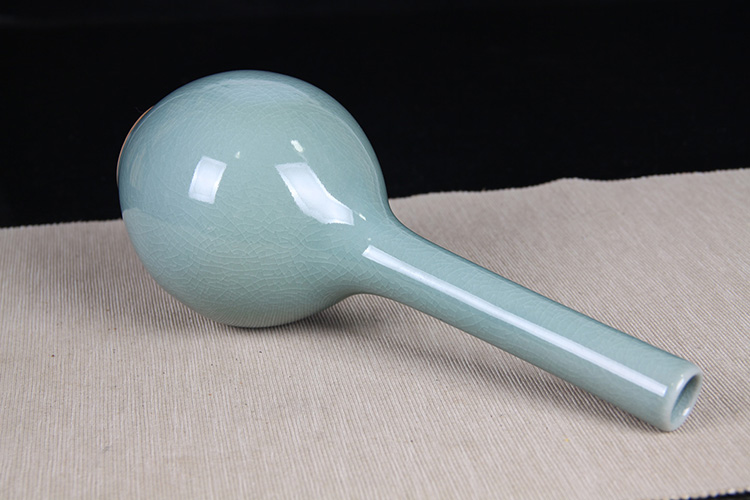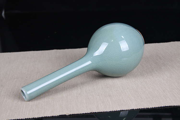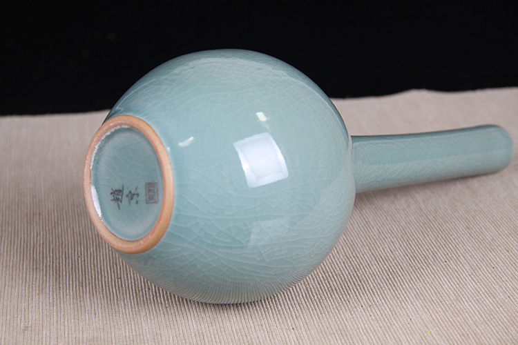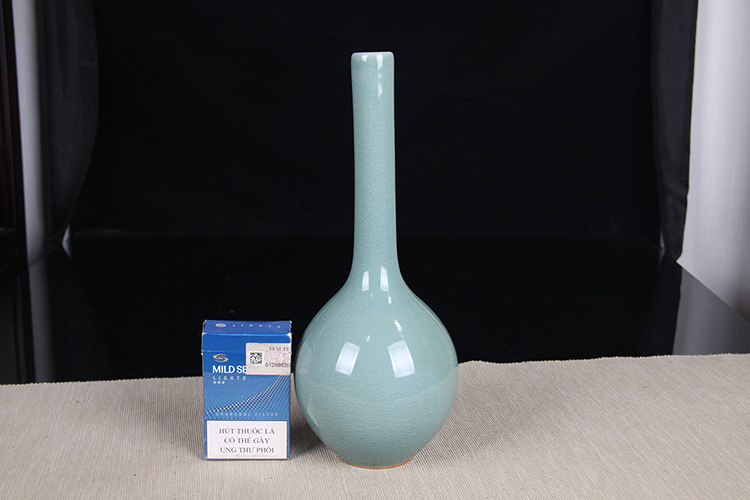 日本花器 日本蓝釉兔毫纹长颈鹤首瓶 日本政平窑,流纹烧鹤首花瓶花器花插,釉水极为肥润,铁胎工艺,带原装供箱