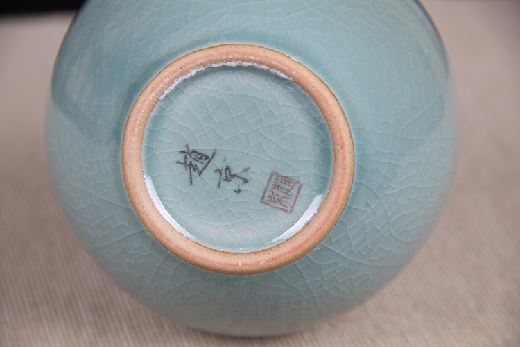日本花器 日本白釉大肚螺旋纹花瓶 日本陶瓷花入,器型大气,釉面肥润,带作者款识,带原装供箱
