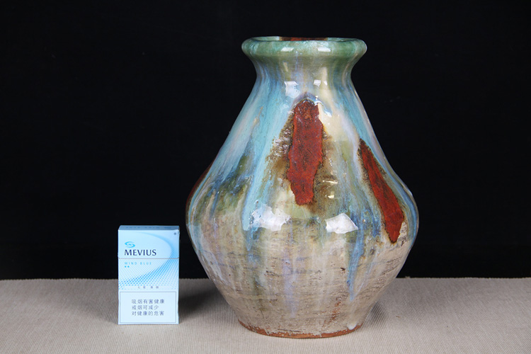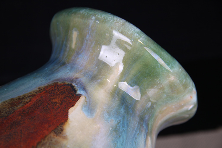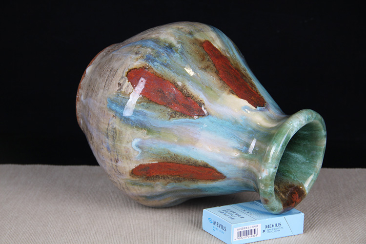 日本花器 日本蓝釉兔毫纹长颈鹤首瓶 日本政平窑,流纹烧鹤首花瓶花器花插,釉水极为肥润,铁胎工艺,带原装供箱