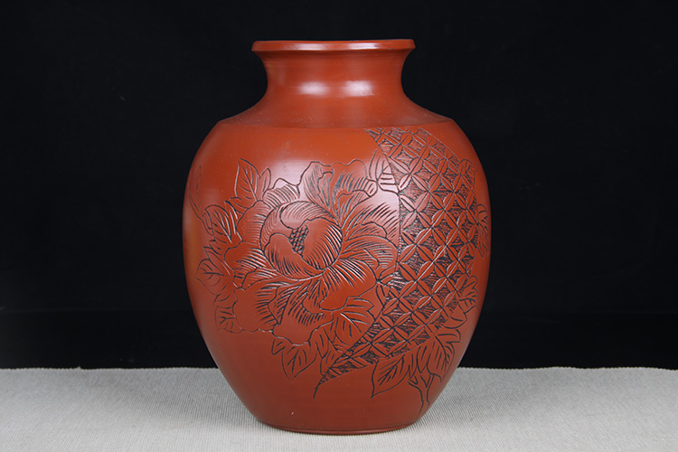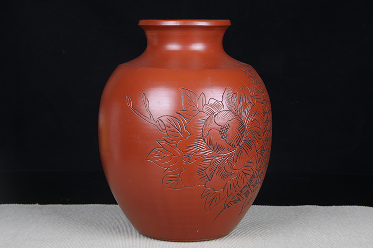 日本花器 日本木制刀刻纹花器花瓶 内有铜胆,尺寸较大