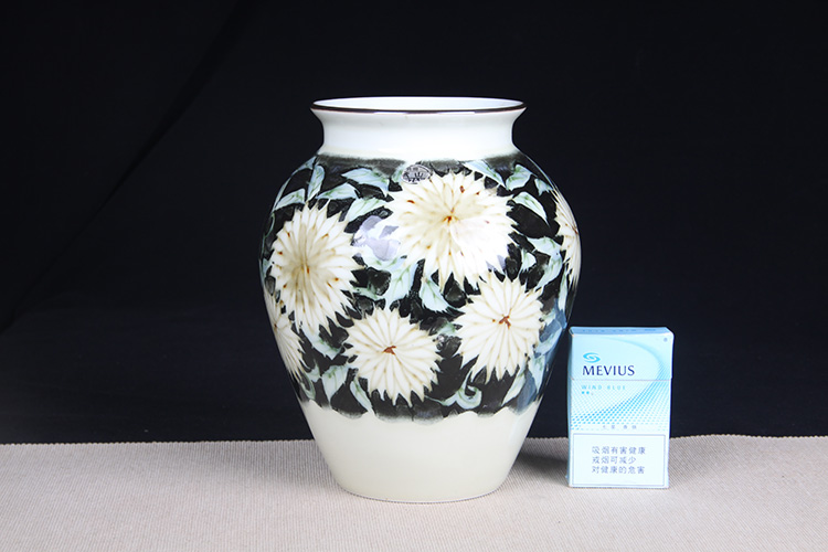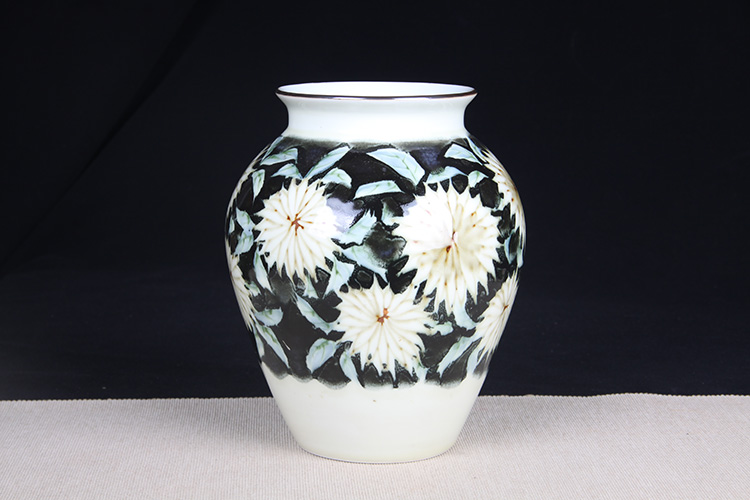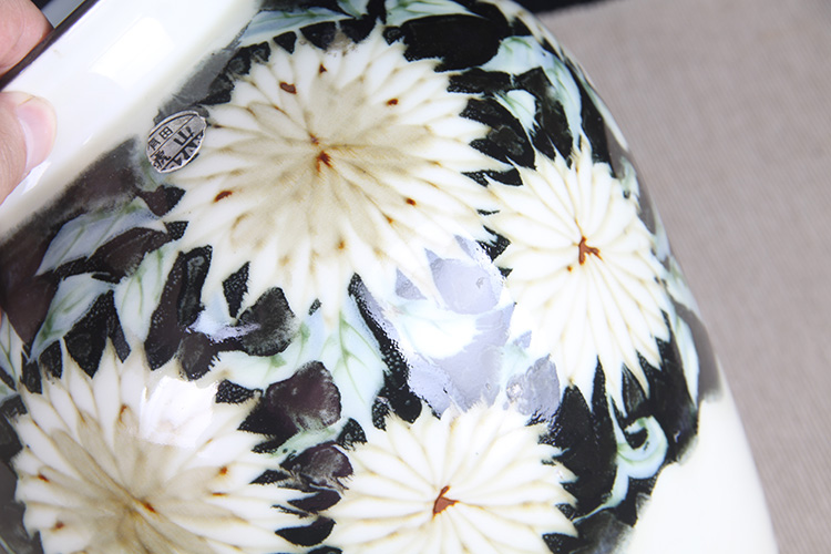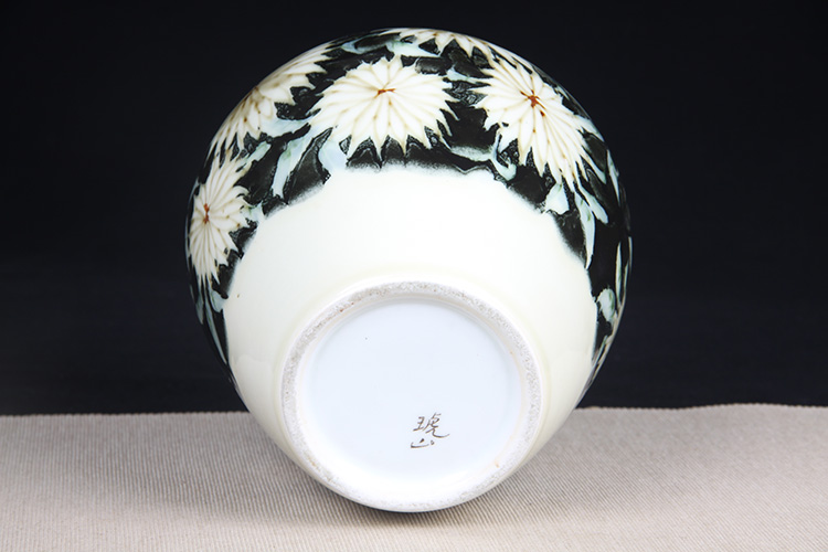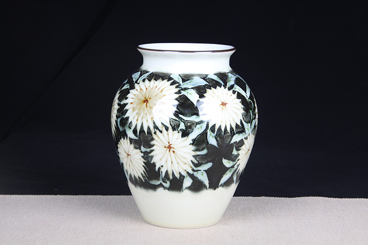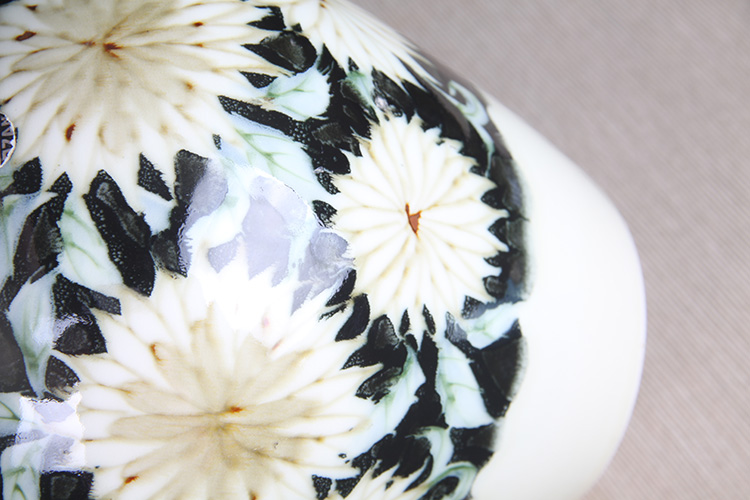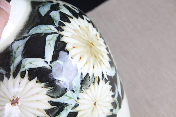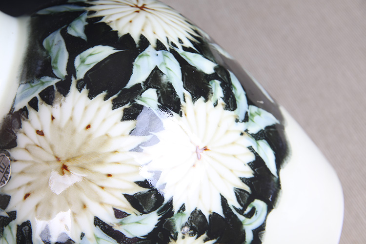日本花器 日本白釉雕花荷叶纹双耳大肚瓶 日本陶瓷白釉花瓶花插,出石烧,盈进舍造,釉水肥润,带原装供箱、证书
