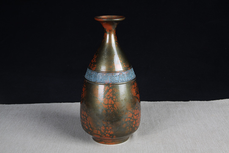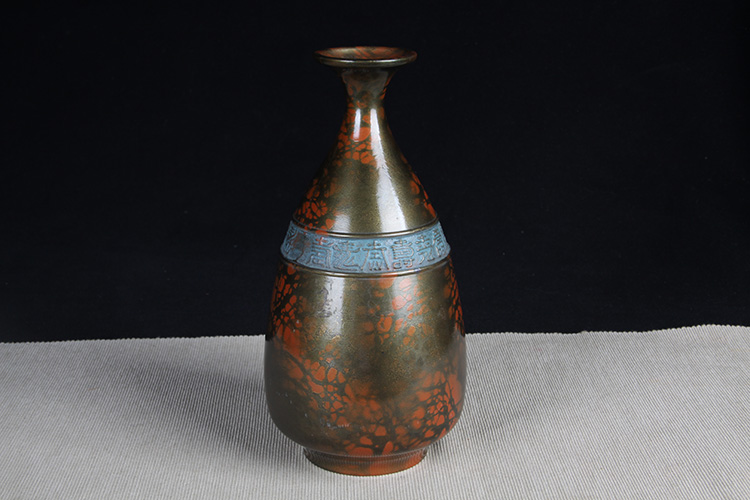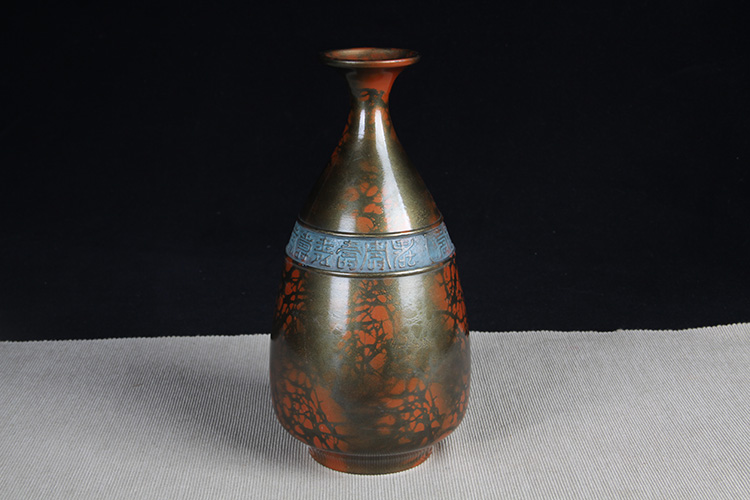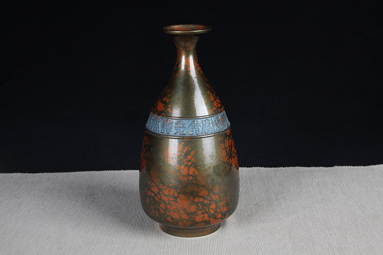 日本花器 日本寿字大肚铜花瓶 日本斑紫铜工艺,铸造寿字纹,器型大气,性价比高