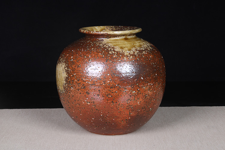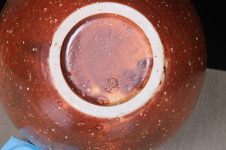 【名称】日本花器 日本信乐烧落灰大肚瓶 日本信乐烧三彩作,古拙味十足,带原装供箱。