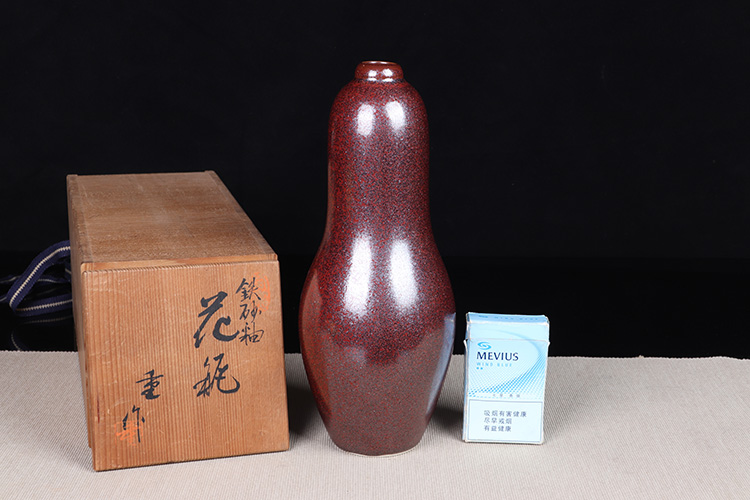 【名称】日本花器 日本铁釉葫芦形花瓶 日本铁釉工艺,釉水肥润,高温烧制,金属质感强烈,葫芦器型花瓶花插花入,器型漂亮,带原装供箱。