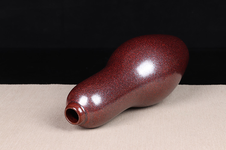 日本花器 日本铁釉葫芦形花瓶 日本铁釉工艺,釉水肥润,高温烧制,金属质感强烈,葫芦器型花瓶花插花入,器型漂亮
