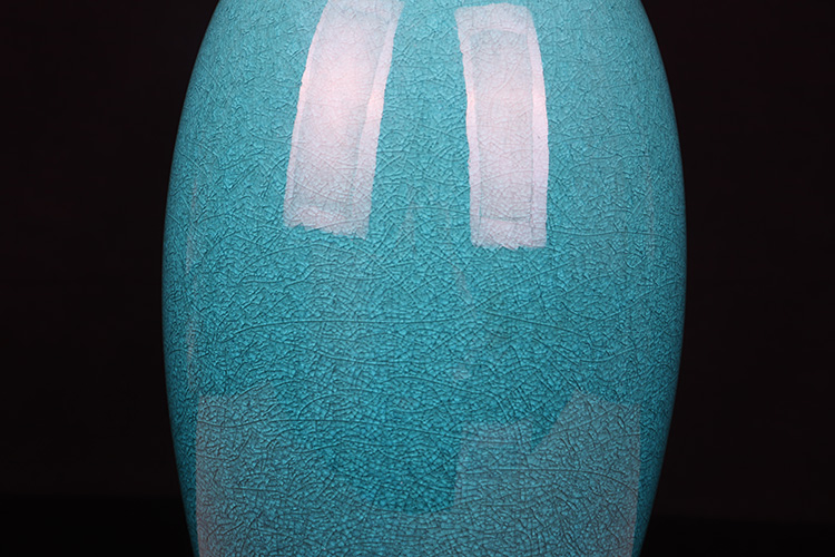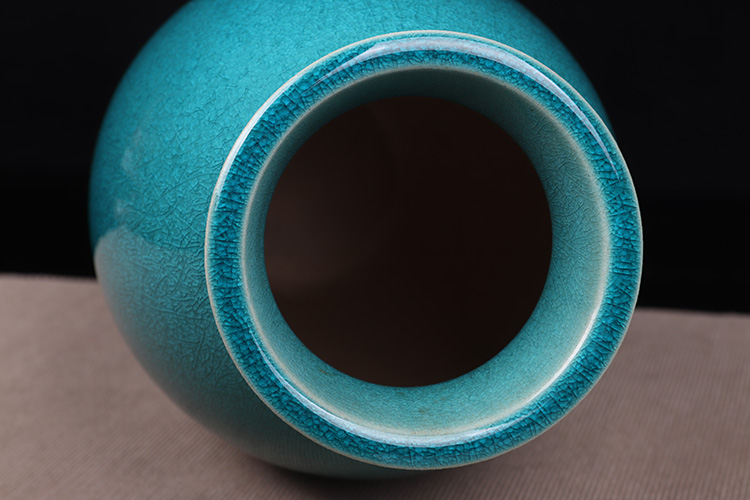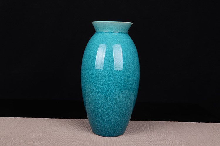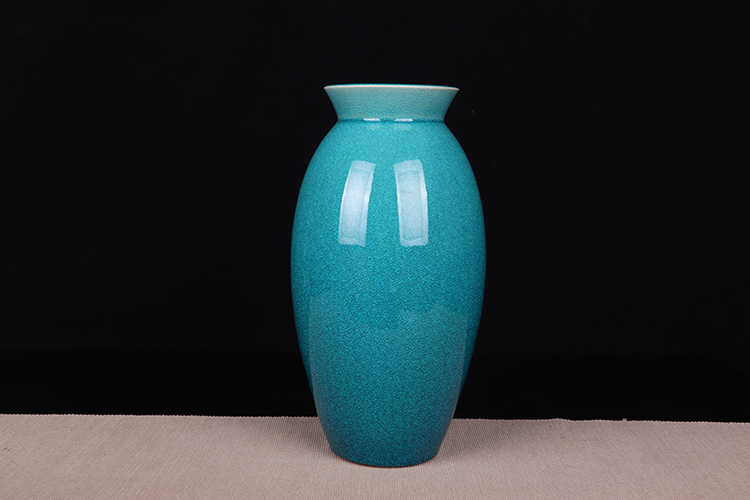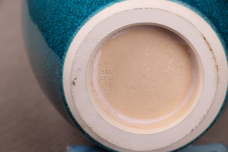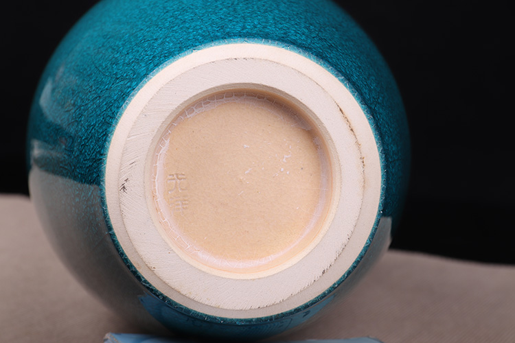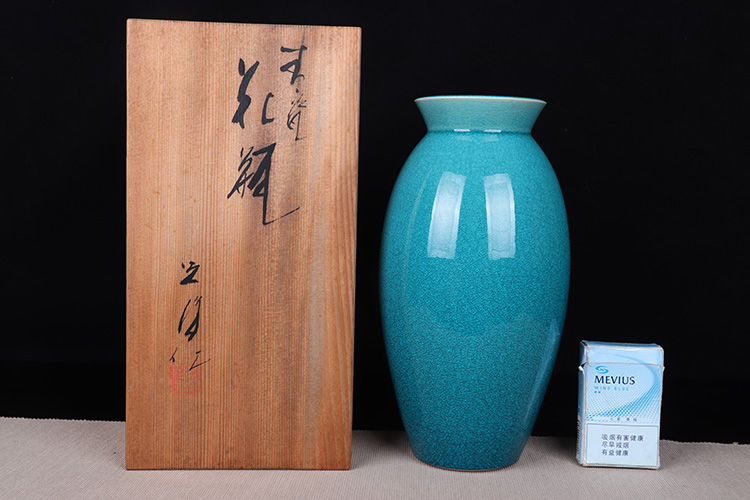 【名称】日本花器 日本孔雀蓝釉橄榄形瓷花瓶 日本孔雀蓝釉,釉水颜色烧制漂亮,细腻开片,器型漂亮,光洋作,带原装供箱