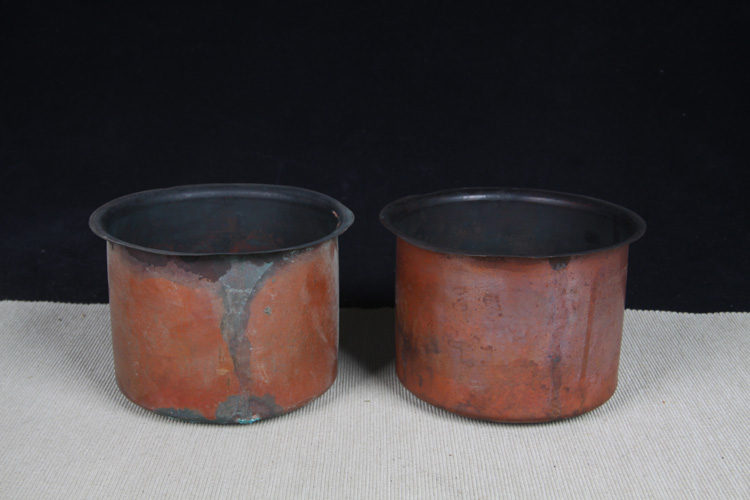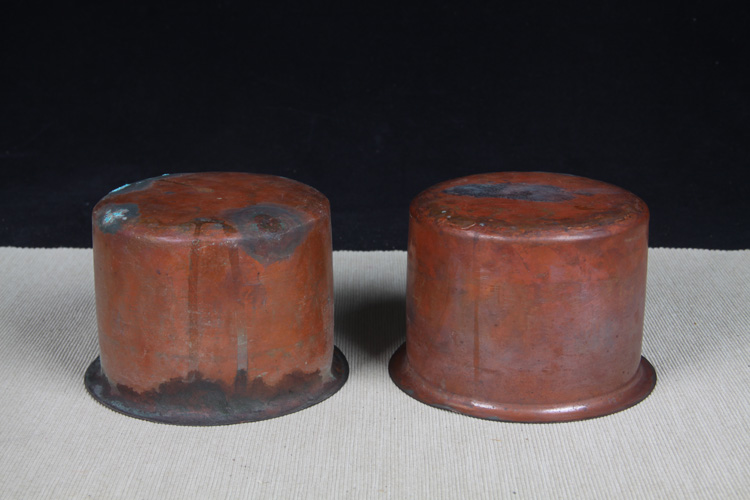 【规格】木口:12.3cm,底:12.6cm,高:15.1cm。铜口:12cm,底:10.5cm,高:8.3cm,重量:0.13kg。
