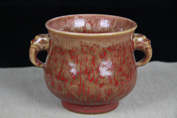 日本建水 日本常滑烧手刻牡丹花卉纹包袋型建水 日本常滑烧工艺,宝龙窑晓山刀刻,工艺精细