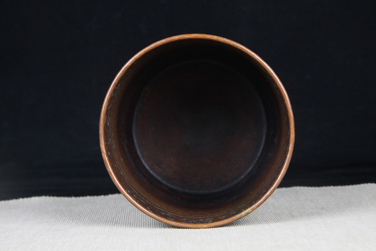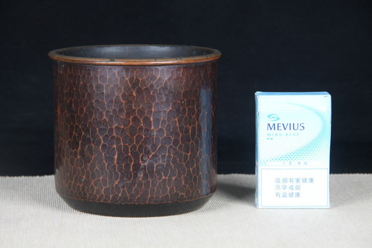 【名称】日本建水日本铜建水手锤锤目纹直筒型铜建水一张铜皮手锤而成敲打工艺精细,昭和时期,年份久,包浆好,尺寸较大,工艺不输玉川堂,性价比高。口:13.3cm,底:10.5cm,高:12cm,重量:407.3g。