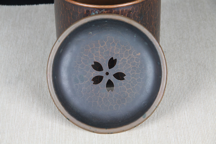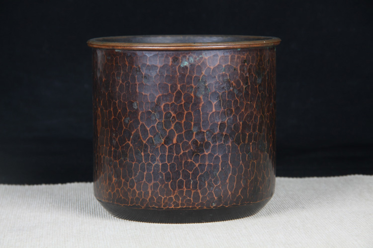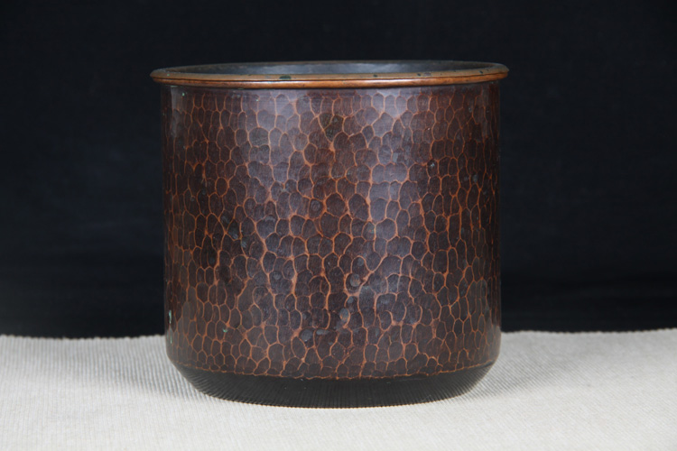 日本建水 日本铜建水手锤锤目纹直筒型铜建水 一张铜皮手锤而成敲打工艺精细,昭和时期,年份久,包浆好