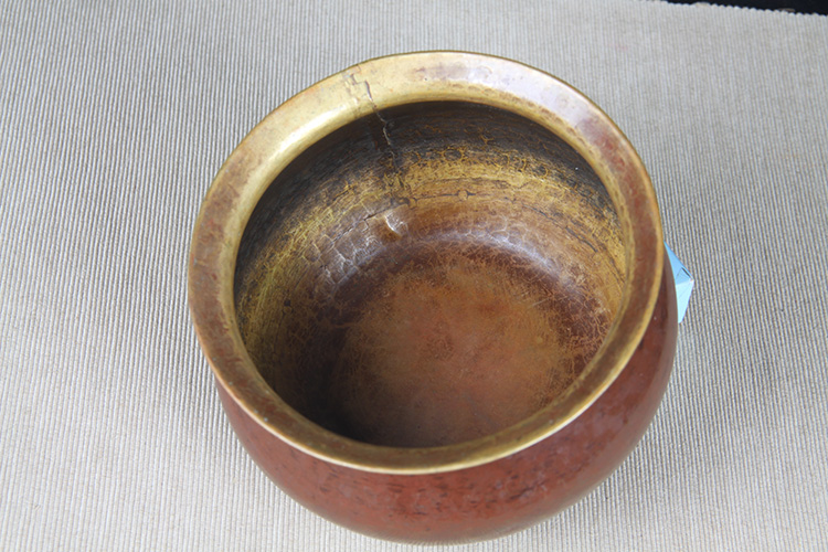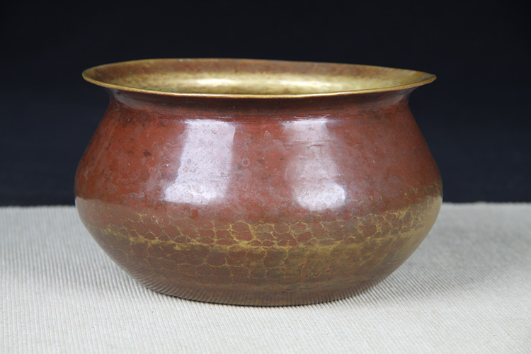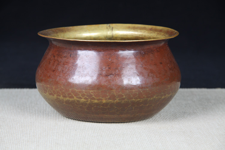 日本备前烧 备前烧钵行建水 纯手工手拉成行,火痕落灰金银彩烧制完美,器型端庄,一只非常古拙的建水,带原装供箱