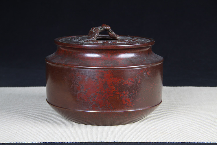 日本备前烧 备前烧钵行建水 纯手工手拉成行,火痕落灰金银彩烧制完美,器型端庄,一只非常古拙的建水,带原装供箱