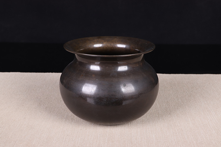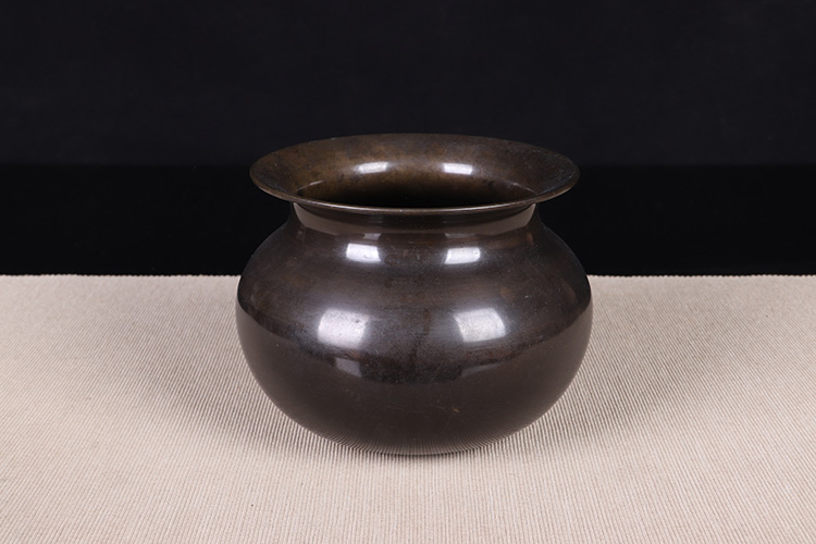 日本备前烧 备前烧钵行建水 纯手工手拉成行,火痕落灰金银彩烧制完美,器型端庄,一只非常古拙的建水,带原装供箱