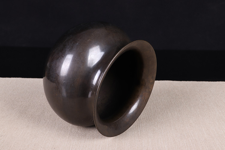 日本建水 日本常滑烧手刻牡丹花卉纹包袋型建水 日本常滑烧工艺,宝龙窑晓山刀刻,工艺精细