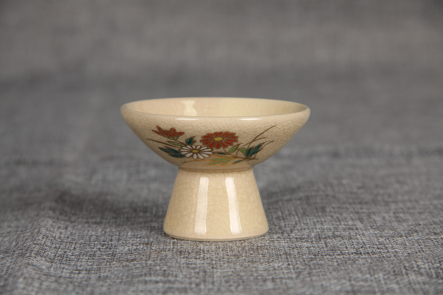 日本酒器 冰裂纹 鲜红黄花 品杯 花瓶 全套 品相完美 带原装桐木供箱