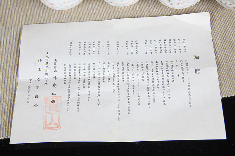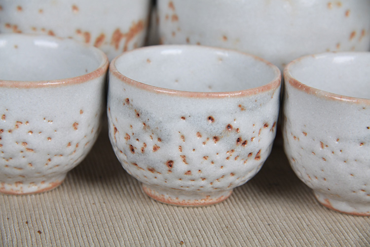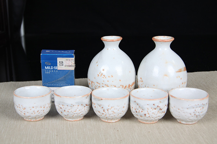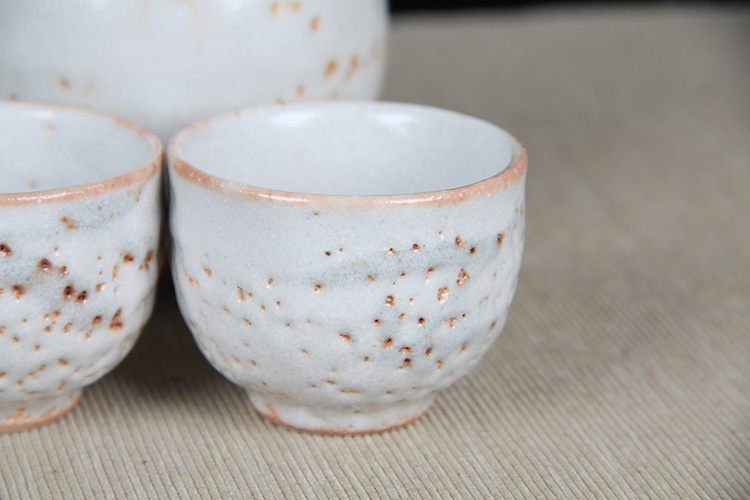 日本陶瓷 雅山作 志野烧 中岛正雄 陶瓷 酒器 套件 全套 带原装桐木供箱 且其并非只有美丽的外表 由于矿物质的作用 治野杯更易于聚香 改善茶水口感