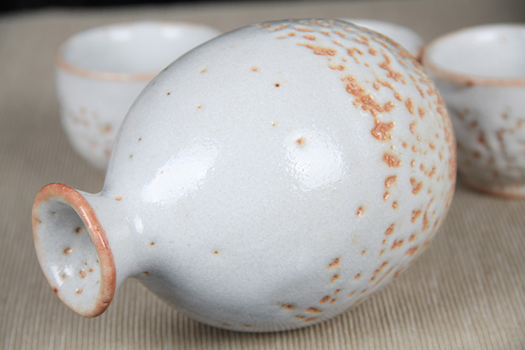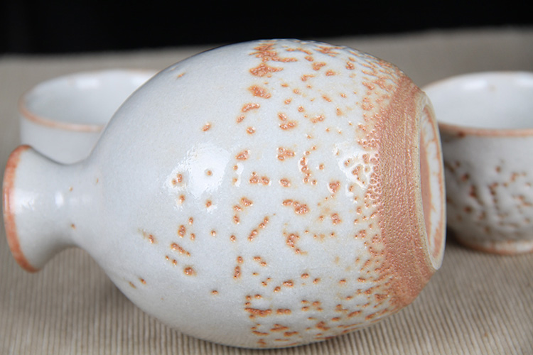 【名称】由于制作志野烧的艾土极不易寻得因此产量一直不多。壶口:3.6cm,底:4.6cm,高:11.5cm,肚:8.4cm,容量:290ml,被扣:5.8cm,底:31cm,高:4.5cm,容量65ml。