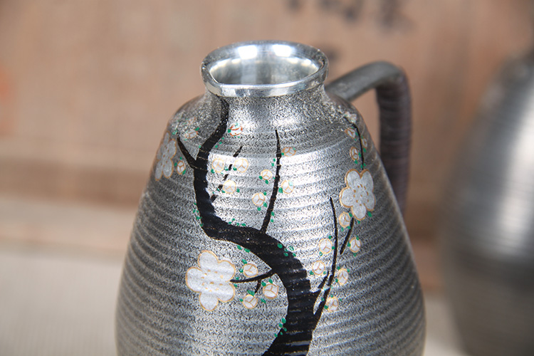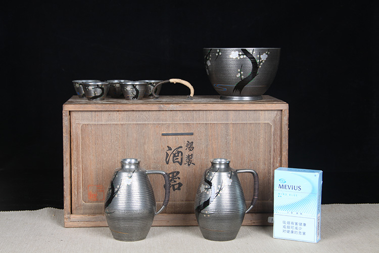 日本茶器 日本本锡螺旋纹酒壶品茶杯七件套 日本本锡款锡制酒具,酒壶均有凹陷,品茶杯完美,带原装供箱,特价出