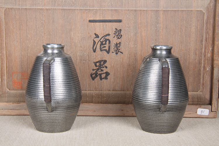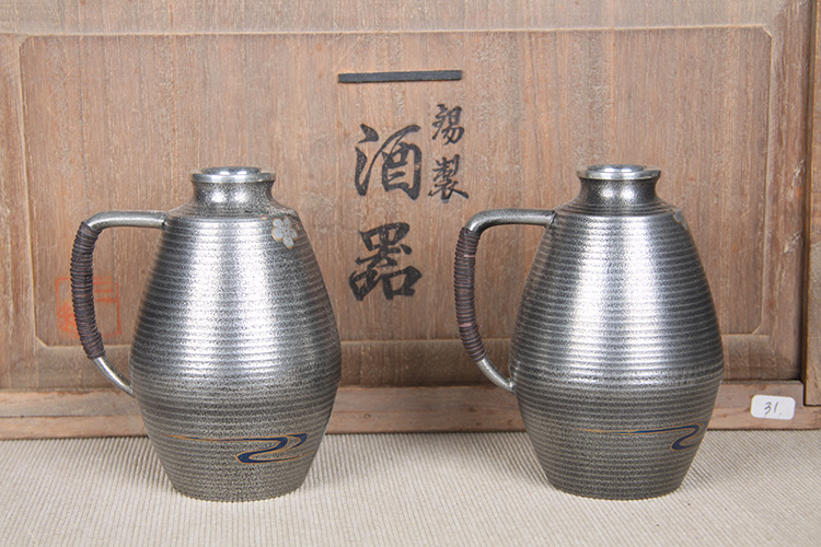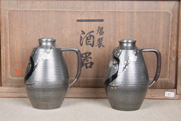 日本酒器 日本本锡锡半螺旋纹酒器三客 日本本锡材质锡半款,酒壶酒杯三件套,带原装供箱,有使用痕迹,性价比高