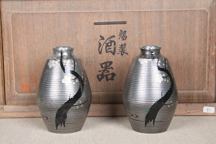 日本酒器 日本九谷烧徳利酒器酒壶 日本九谷烧工艺,绘制花鸟纹,葫芦瓶型,九谷晓堂款,做花瓶十分合适,带原装供箱