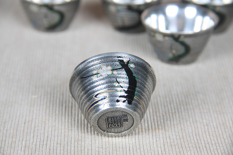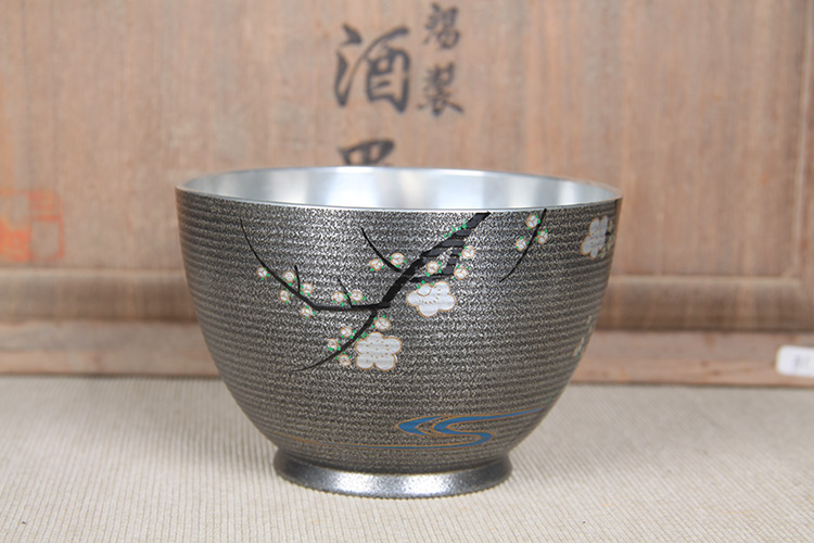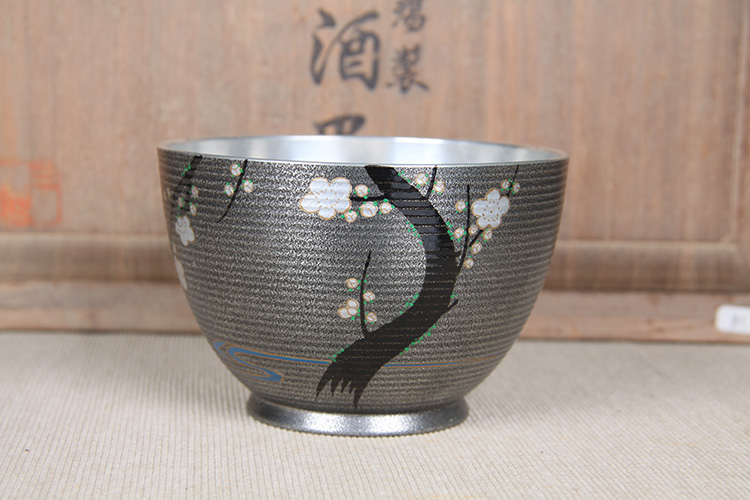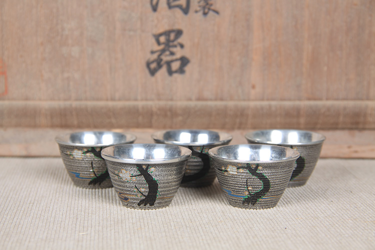 日本茶杯组 日本继山作锡制平口杯五客 日本锡制茶碗,纪念款,器型漂亮,完美供箱证书