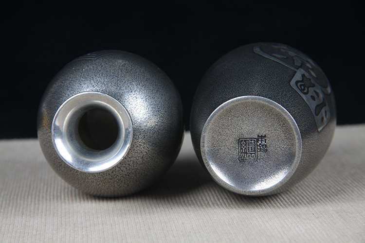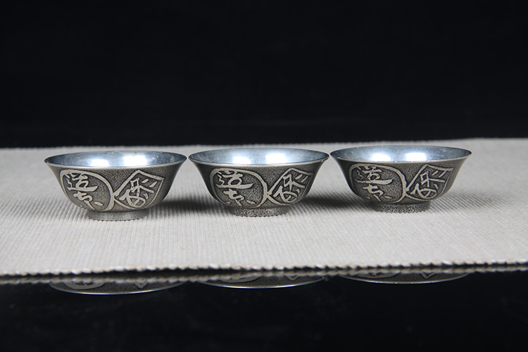 日本茶杯组 日本继山作锡制平口杯五客 日本锡制茶碗,纪念款,器型漂亮,完美供箱证书