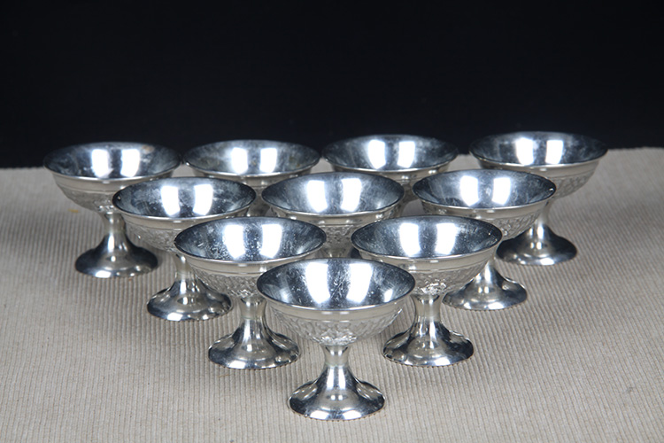 • 日本杯托 日本腾美造花瓣形铜杯托五客 铜制杯托,花瓣形,内铸造梵文,名家作,年份久,带原装供箱