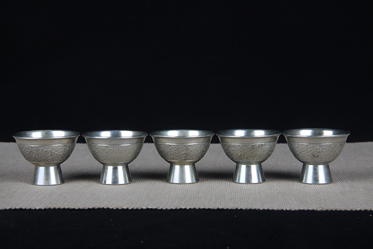 日本茶杯组 日本继山作锡制平口杯五客 日本锡制茶碗,纪念款,器型漂亮,完美供箱证书