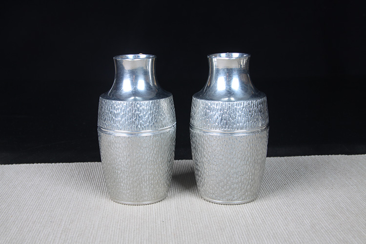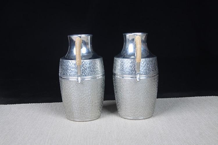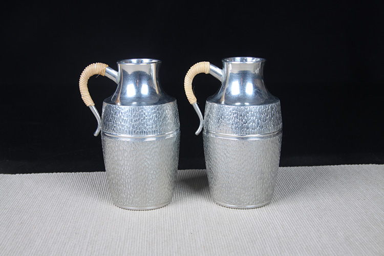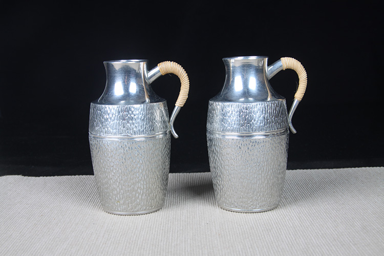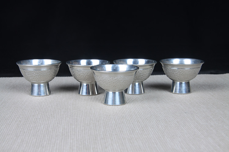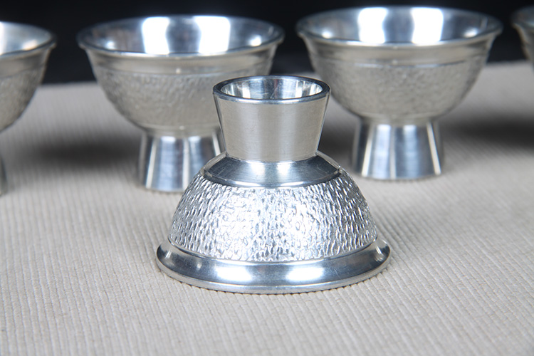 日本酒器 日本锡制酒壶高脚酒杯七件套 日本本锡锡半款锡制酒器一套,难得高脚酒杯,整体库存全新