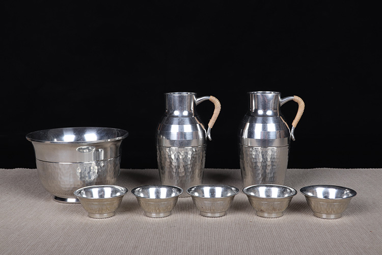 日本酒器 日本本锡锤目纹锡制酒器八件套 日本本锡款锡制酒器,锤目纹工艺精细,几乎全新