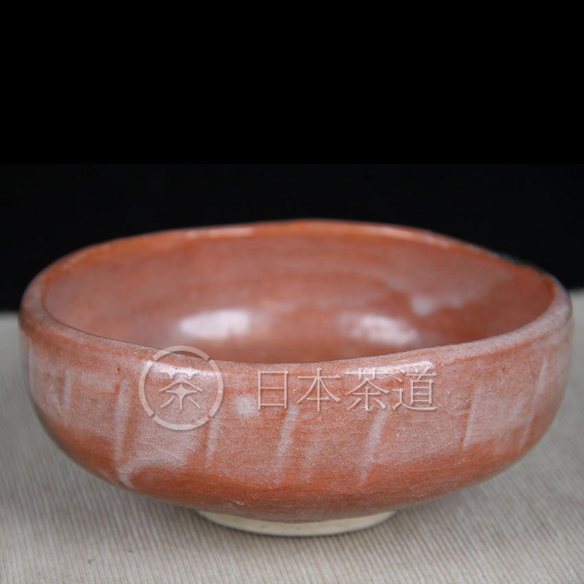 日本茶碗 乐烧 赤乐烧 碗型 老茶碗 自然烧出 莹润 涂上赤褐色釉药烧制成的乐烧茶碗 据说乐烧的发源是千利休指导烧瓦工匠长次郎后 由长次郎开始制造