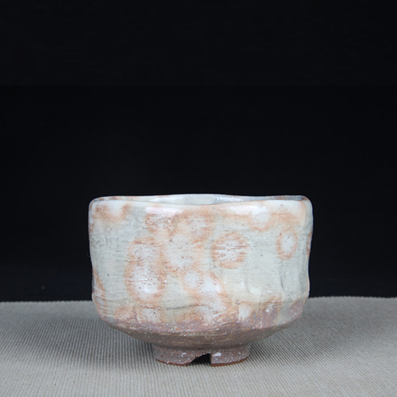 日本抹茶碗 日本志野烧直筒型抹茶碗 日本名家三木念山制志野烧抹茶碗,带原装供箱